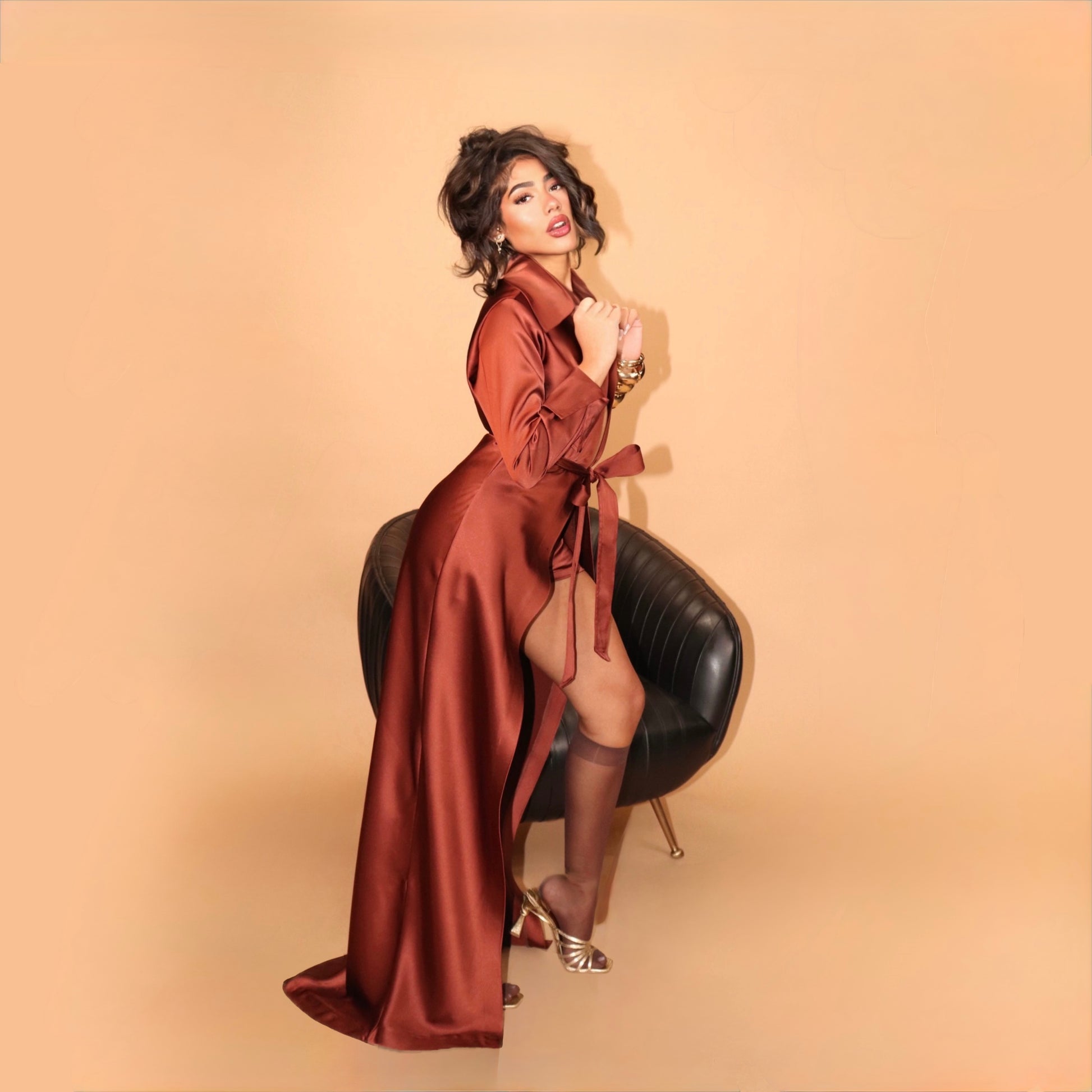 This two-piece set moves like liquid while keeping the silhouette clean, sculpted, and refined.